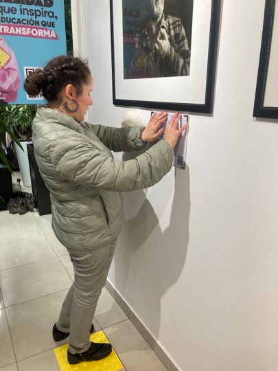 Tras revelar los negativos en placa, se trabajó con la experta en laboratorio fotográfico analógico, Fernanda Larraín, para llevar los retratos al papel fotosensible. Además de sumar algunas impresiones digitales escritas en braille. Cada imagen va acompañada con textos macrotipo y braille, junto a un código QR donde se podrán escuchar extractos de las entrevistas, y muy importante: las máscaras.