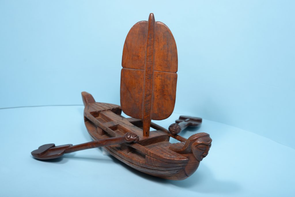 Pieza rapanui, la Barca de Hotu-Matua hecha por Juan Haoa en 1957, colección Museo Chileno de Arte Precolombino (M-106). © Justine Graham.