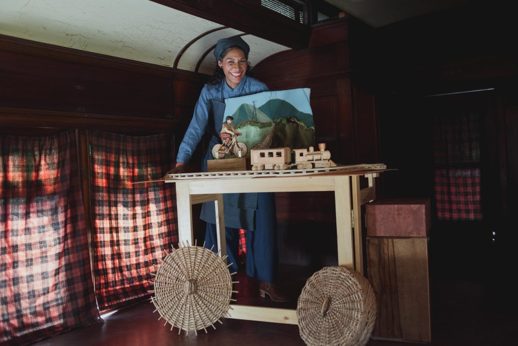 “Yo provengo de una familia ferroviaria”, dice orgullosa la actriz Catalina Moya Marchant, encargada de la narraturgia, dirección general, arpilleras e interpretación de Chiqui chiqui chá; cuento escénico unipersonal de memoria obrero ferroviarias de la ex Maestranza Central de San Bernardo que, tras un exitoso debut- homenaje en el Barrio Obrero Ferroviario de esta comuna, estrenó el 30 de noviembre en el coche de pasajeros I-205 del Museo Ferroviario de Santiago que posee una de las principales colecciones sudamericanas de locomotoras a vapor, varias de ellas conservadas por la misma Maestranza.