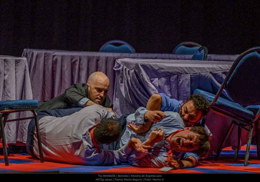 Temis —cuyo título hace alusión a la diosa griega de la justicia y la equivalencia— que es la tercera parte de la trilogía de la compañía Bonobo. Una apuesta artística que, como todo lo de esta compañía, se basa en la creación colectiva, la improvisación y una profunda investigación escénica, con un estilo que combina humor negro, ironía, lo absurdo y una fuerte crítica social.